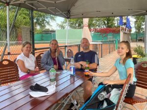 Das Wetter zeigte sich von seiner „dynamischen“ Seite: Sonne, Wind und Regen wechselten sich ab. Nach der sechsten Runde mussten wir aufgrund des Regens kurz unterbrechen. Doch echte Spielerinnen und Spieler lassen sich nicht unterkriegen – die siebte bis neunte Runde wurde kurzerhand unterm Schirm ausgetragen.